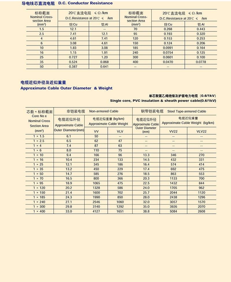 0.6/1KV聚氯乙烯绝缘电力电缆