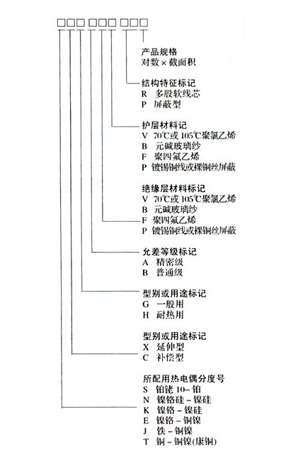 c)字母“C”表示补偿型补偿导线(型别)。KC补偿导线