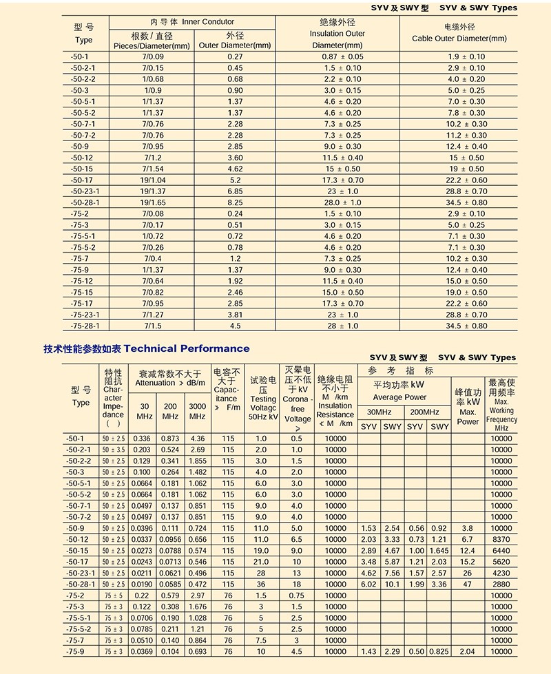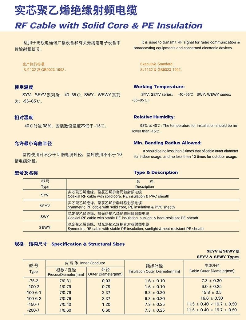 实芯聚乙烯绝缘射频电缆